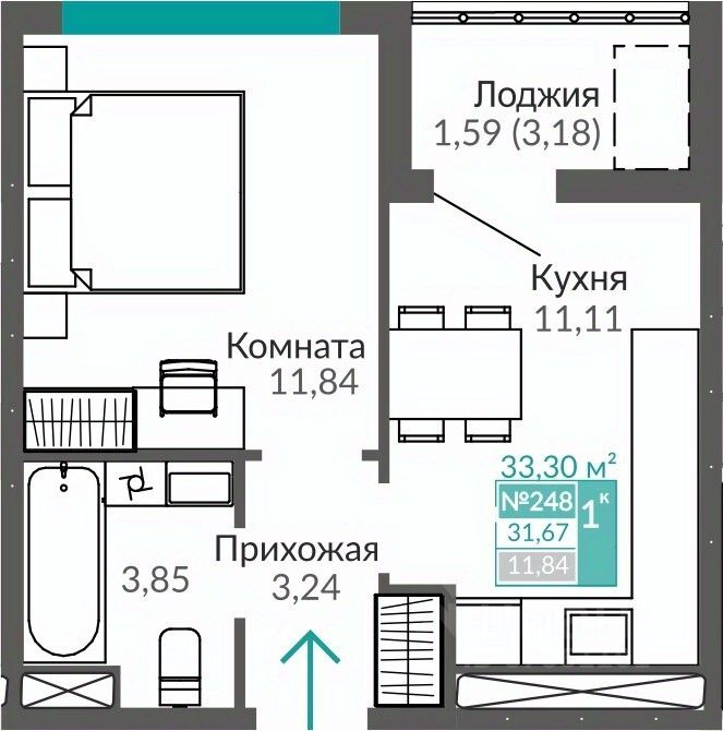 Продаётся 1-комнатная квартира в строящемся доме (С7), срок сдачи: III-кв. 2027, общей площадью 31.67 кв.м., на 9 этаже. Жилой квартал "Абрикос" - начало яркой истории жизни в прогрессивном районе Симферополя - Семья городских кварталов "Крымская Роза".