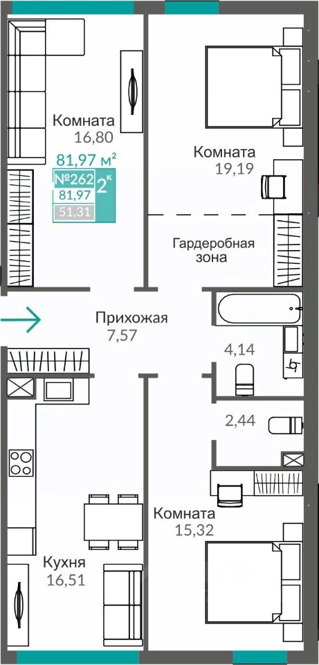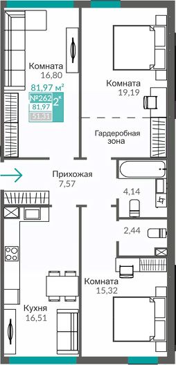 Продаётся 3-комнатная квартира в строящемся доме (С7), срок сдачи: III-кв. 2027, общей площадью 81.97 кв.м., на 2 этаже. Жилой квартал "Абрикос" - начало яркой истории жизни в прогрессивном районе Симферополя - Семья городских кварталов "Крымская Роза".