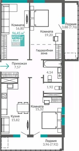 Продаётся 3-комнатная квартира в строящемся доме (С7), срок сдачи: III-кв. 2027, общей площадью 88.61 кв.м., на 4 этаже. Жилой квартал "Абрикос" - начало яркой истории жизни в прогрессивном районе Симферополя - Семья городских кварталов "Крымская Роза".