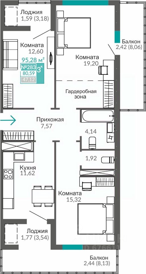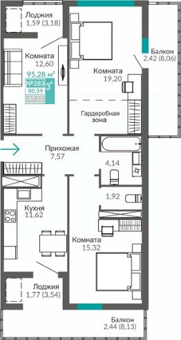 Продаётся 3-комнатная квартира в строящемся доме (С7), срок сдачи: III-кв. 2027, общей площадью 80.59 кв.м., на 5 этаже. Жилой квартал "Абрикос" - начало яркой истории жизни в прогрессивном районе Симферополя - Семья городских кварталов "Крымская Роза".