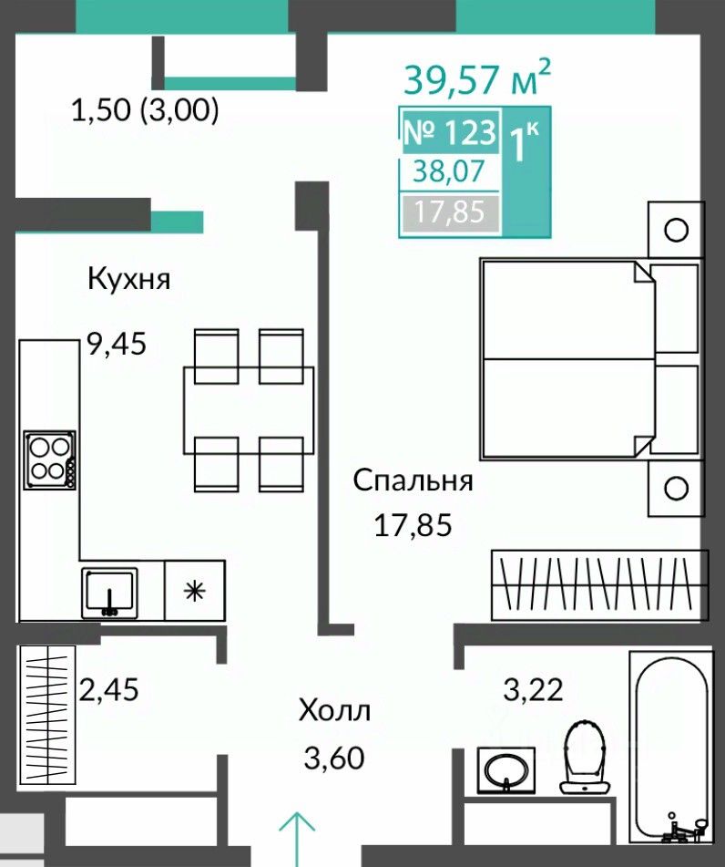 Продаётся 1-комнатная квартира в строящемся доме (Корпус 2), срок сдачи: II-кв. 2027, общей площадью 38.07 кв.м., на 3 этаже. Новый жилой комплекс "Единство" от застройщика "Монолит (Крым)" расположен по адресу Республика Крым, Симферопольский район, село Чистенькое