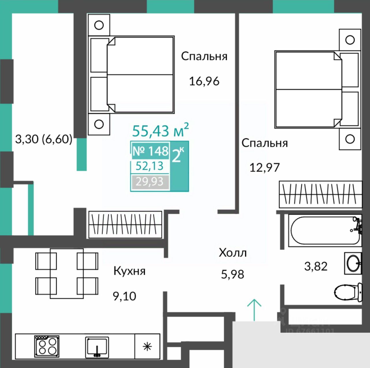 Продаётся 2-комнатная квартира в строящемся доме (Корпус 2), срок сдачи: II-кв. 2027, общей площадью 52.13 кв.м., на 6 этаже. Новый жилой комплекс "Единство" от застройщика "Монолит (Крым)" расположен по адресу Республика Крым, Симферопольский район, село Чистенькое