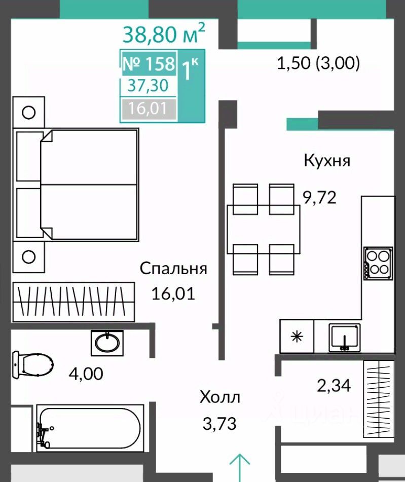 Продаётся 1-комнатная квартира в строящемся доме (Корпус 2), срок сдачи: II-кв. 2027, общей площадью 37.3 кв.м., на 7 этаже. Новый жилой комплекс "Единство" от застройщика "Монолит (Крым)" расположен по адресу Республика Крым, Симферопольский район, село Чистенькое