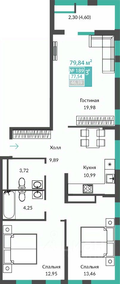 Продаётся 3-комнатная квартира в строящемся доме (Корпус 2), срок сдачи: II-кв. 2027, общей площадью 77.54 кв.м., на 10 этаже. Новый жилой комплекс "Единство" от застройщика "Монолит (Крым)" расположен по адресу Республика Крым, Симферопольский район, село Чистенькое