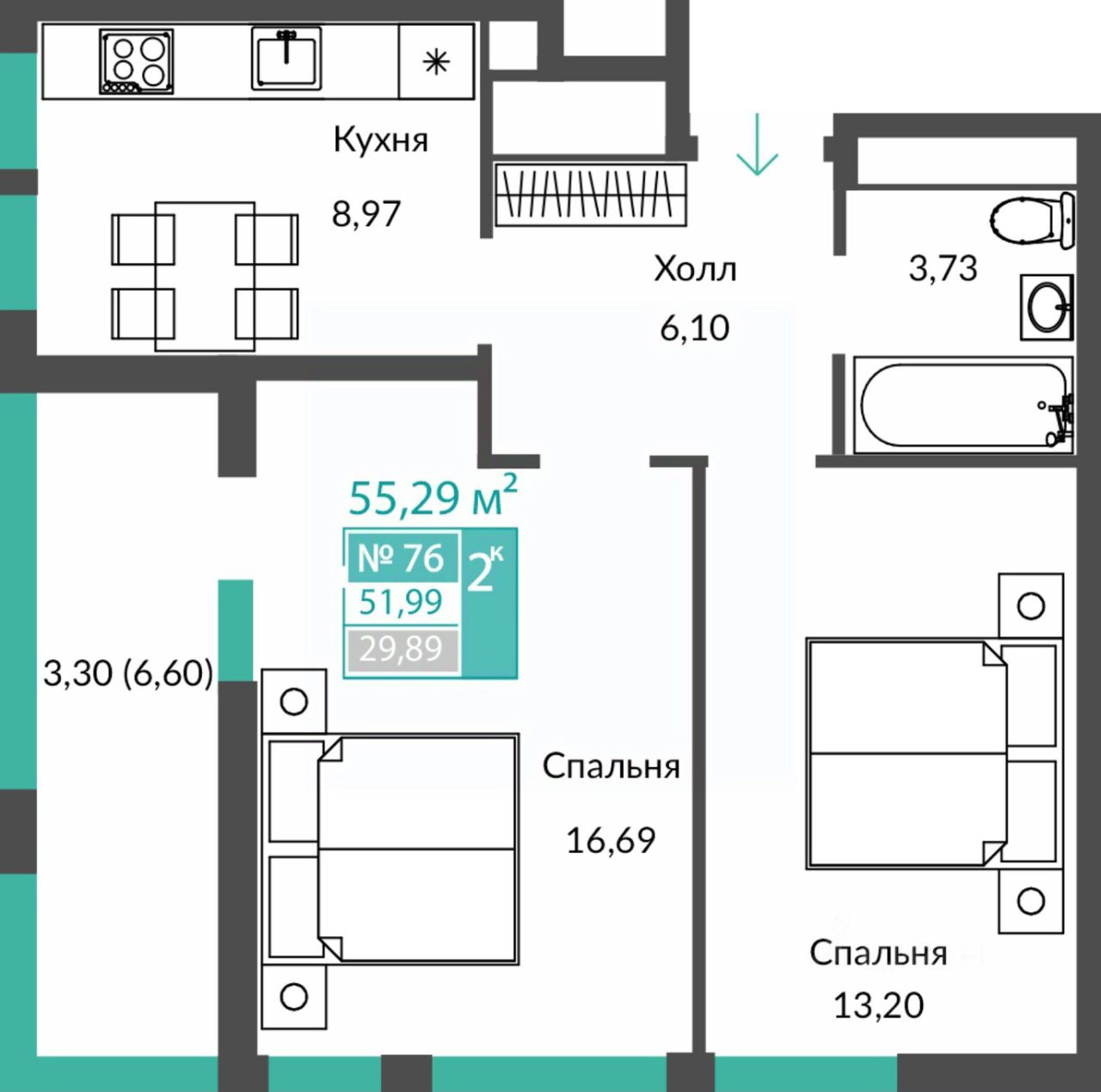 Продаётся 2-комнатная квартира в строящемся доме (Корпус 1), срок сдачи: II-кв. 2027, общей площадью 51.99 кв.м., на 10 этаже. Новый жилой комплекс "Единство" от застройщика "Монолит (Крым)" расположен по адресу Республика Крым, Симферопольский район, село Чистенькое