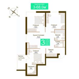 Продаётся 3-комнатная квартира в строящемся доме (Дом 7к2), срок сдачи: II-кв. 2027, общей площадью 65.1 кв.м., на 6 этаже. УМНЫЙ ЖИЛОЙ КОМПЛЕКС