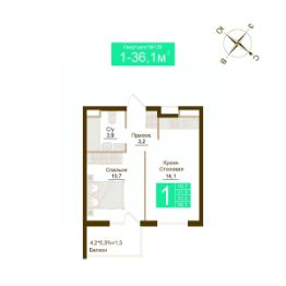 Продаётся 1-комнатная квартира в строящемся доме (Дом 7к2), срок сдачи: II-кв. 2027, общей площадью 33.2 кв.м., на 12 этаже. УМНЫЙ ЖИЛОЙ КОМПЛЕКС