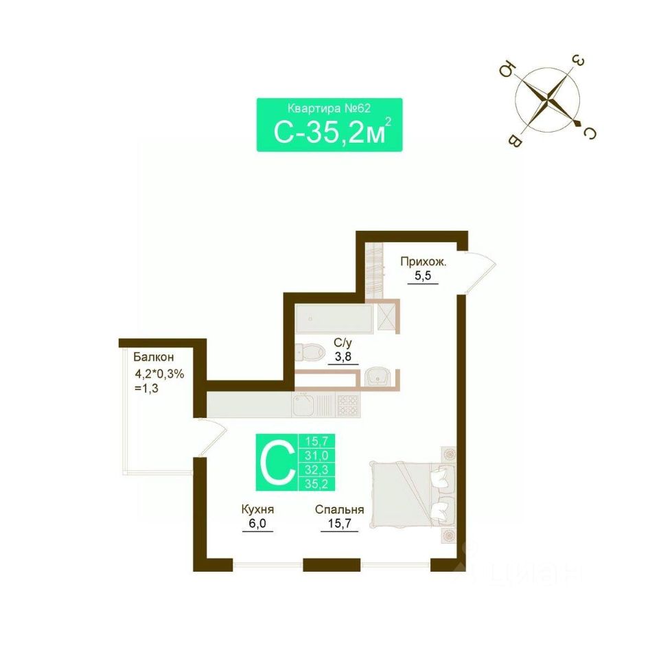Продаётся 1-комнатная квартира в строящемся доме (Дом 7к1), срок сдачи: II-кв. 2027, общей площадью 32.3 кв.м., на 6 этаже. УМНЫЙ ЖИЛОЙ КОМПЛЕКС