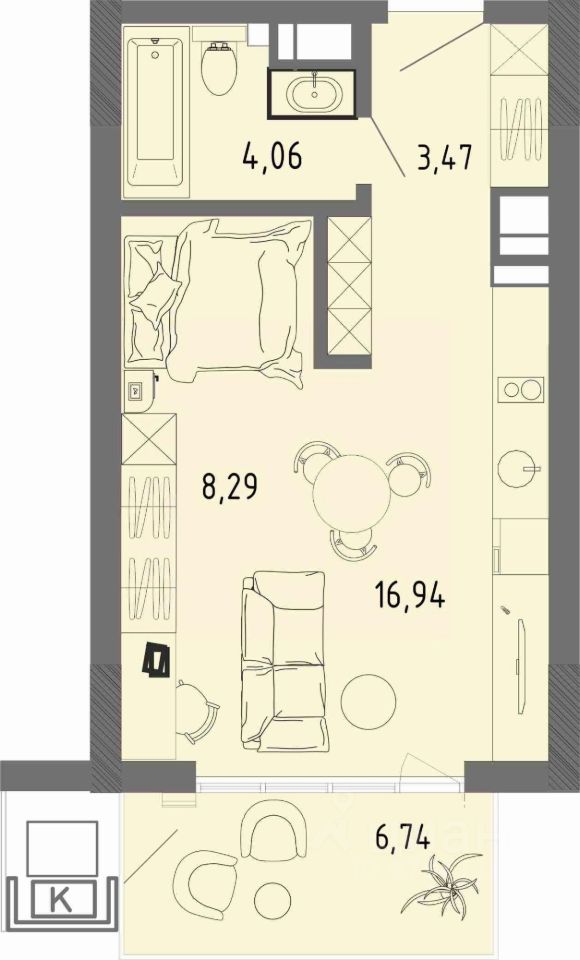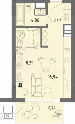 Продаётся квартира 288 площадью 39,5 м2 в новом ЖК СОК