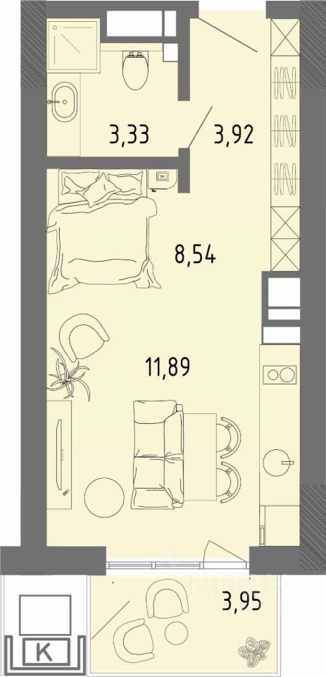 Продаётся квартира 302 площадью 31,63 м2 в новом ЖК СОК