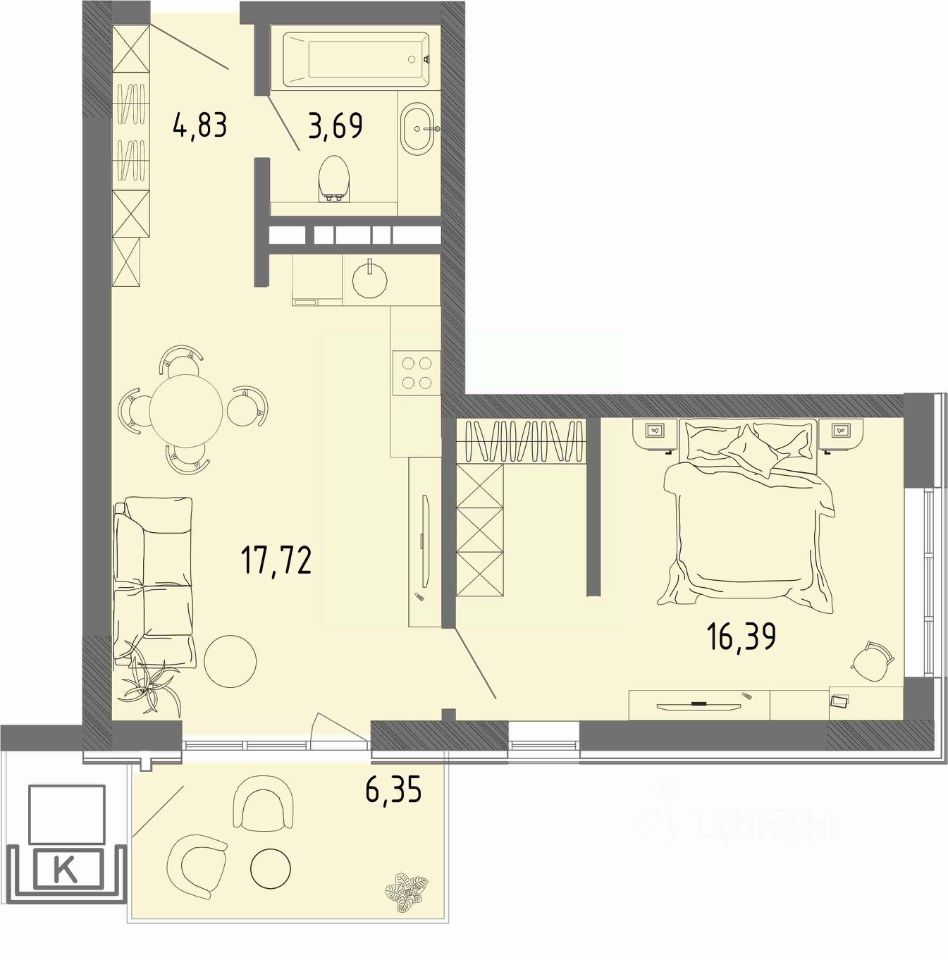 Продаётся квартира 310 площадью 48,98 м2 в новом ЖК СОК