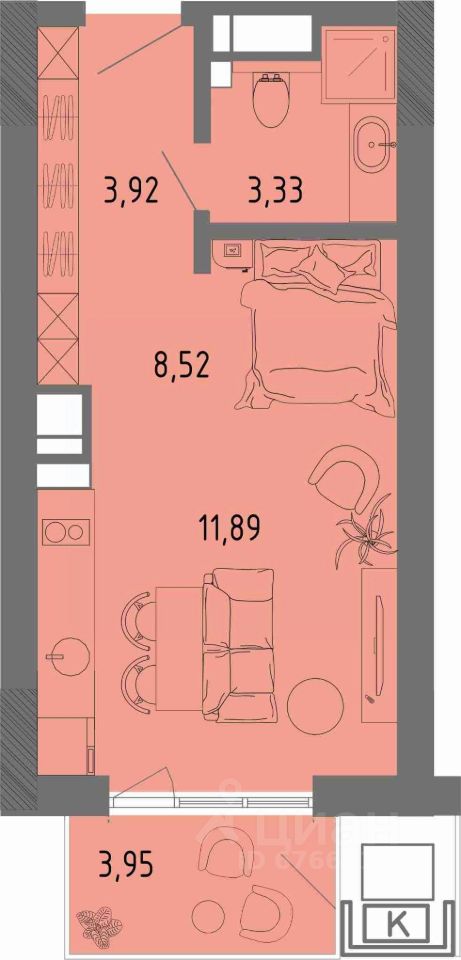 Продаётся квартира 313 площадью 31,61 м2 в новом ЖК СОК