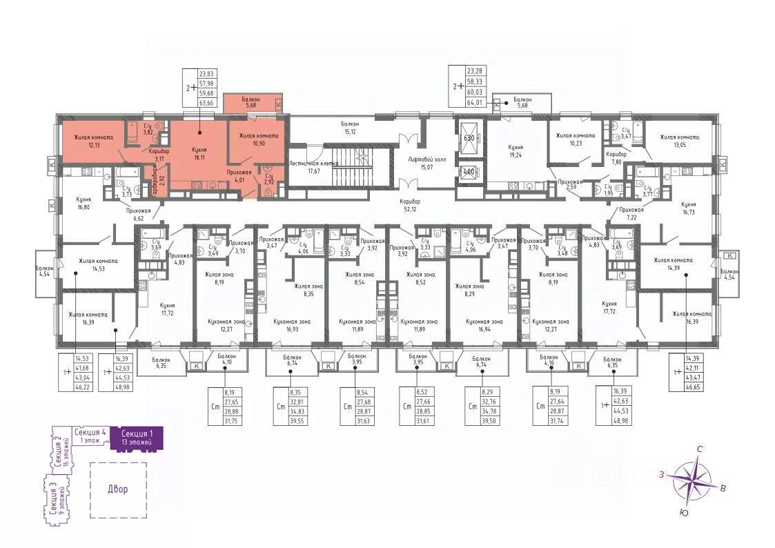 Продаётся квартира 319 площадью 63,66 м2 в новом ЖК СОК