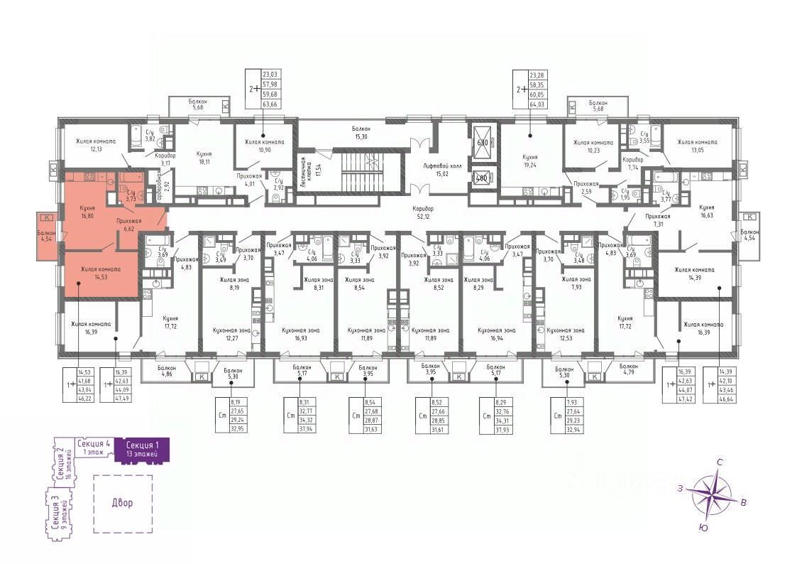 Продаётся квартира 354 площадью 46,22 м2 в новом ЖК СОК
