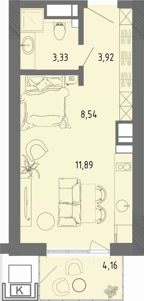 Продаётся квартира 374 площадью 31,84 м2 в новом ЖК СОК