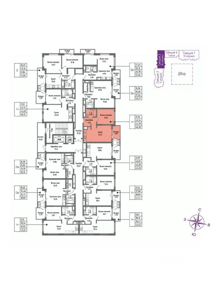 Продаётся квартира 149 площадью 48,38 м2 в новом ЖК СОК