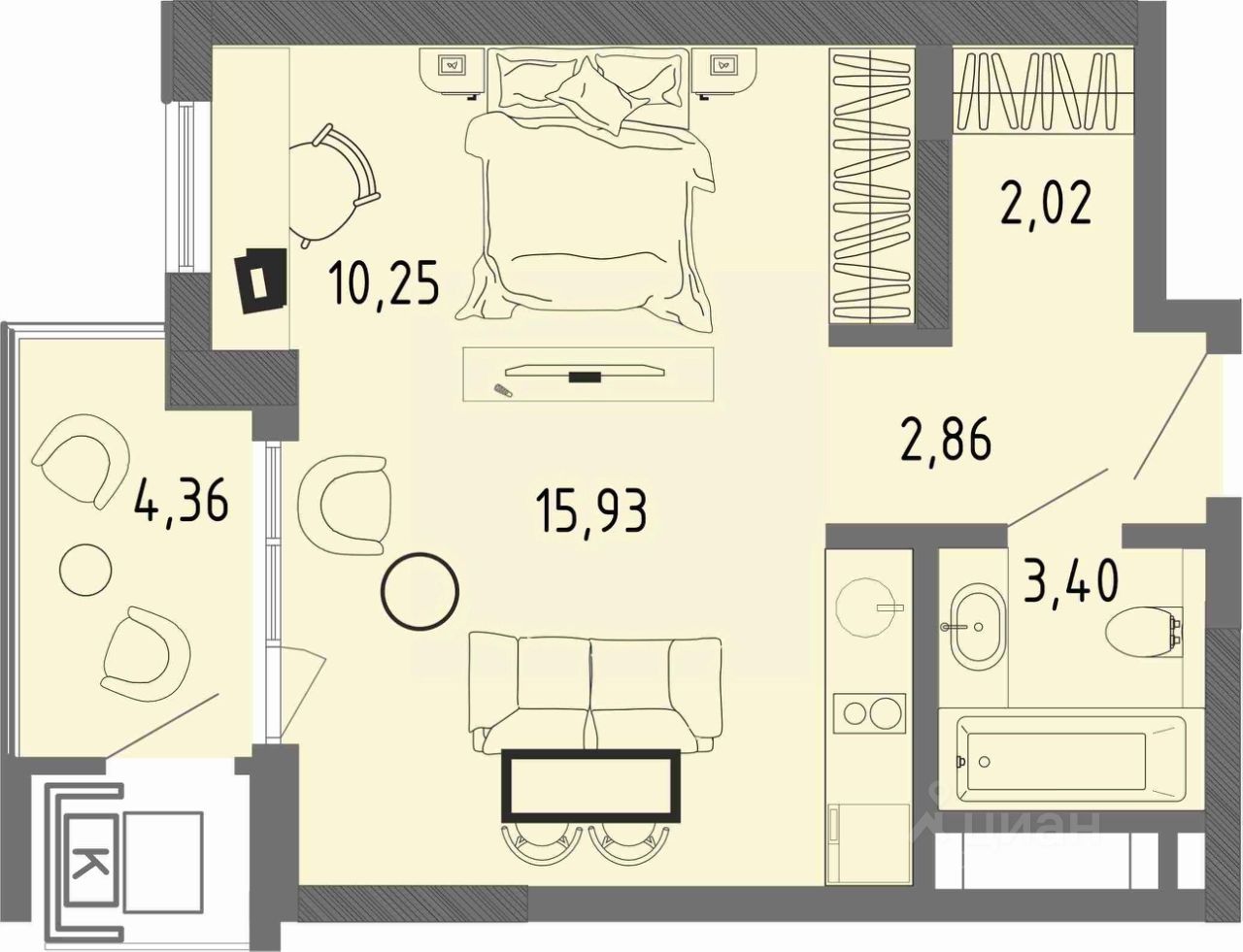 Продаётся квартира  154  площадью 38,82 м2 в новом ЖК СОК