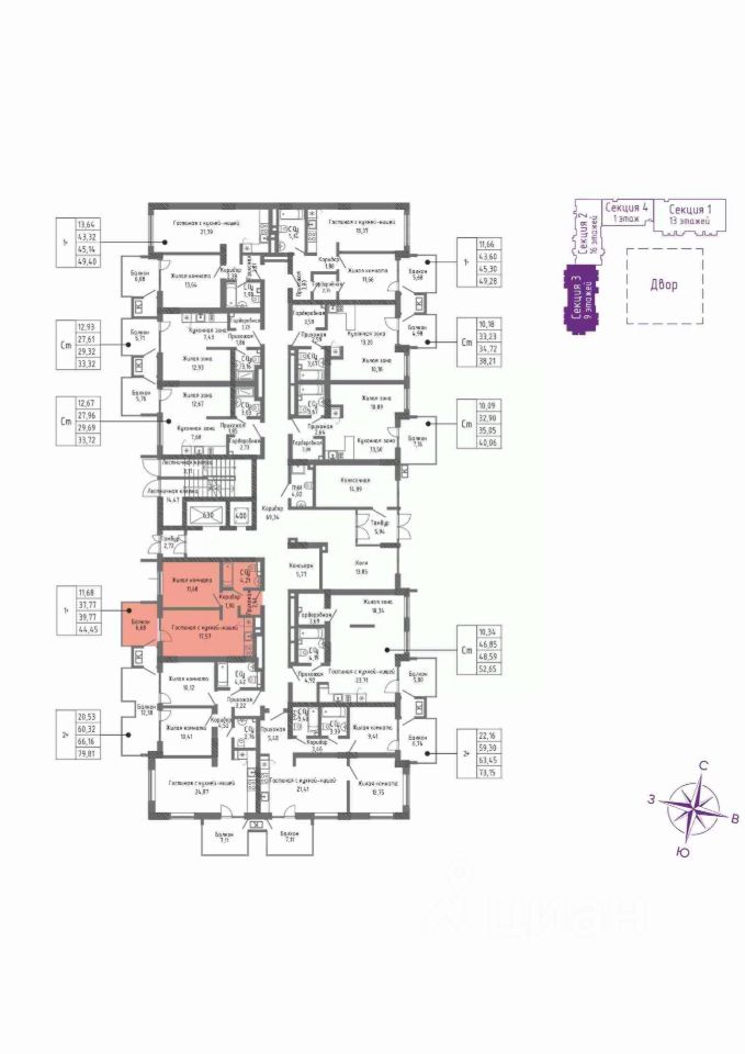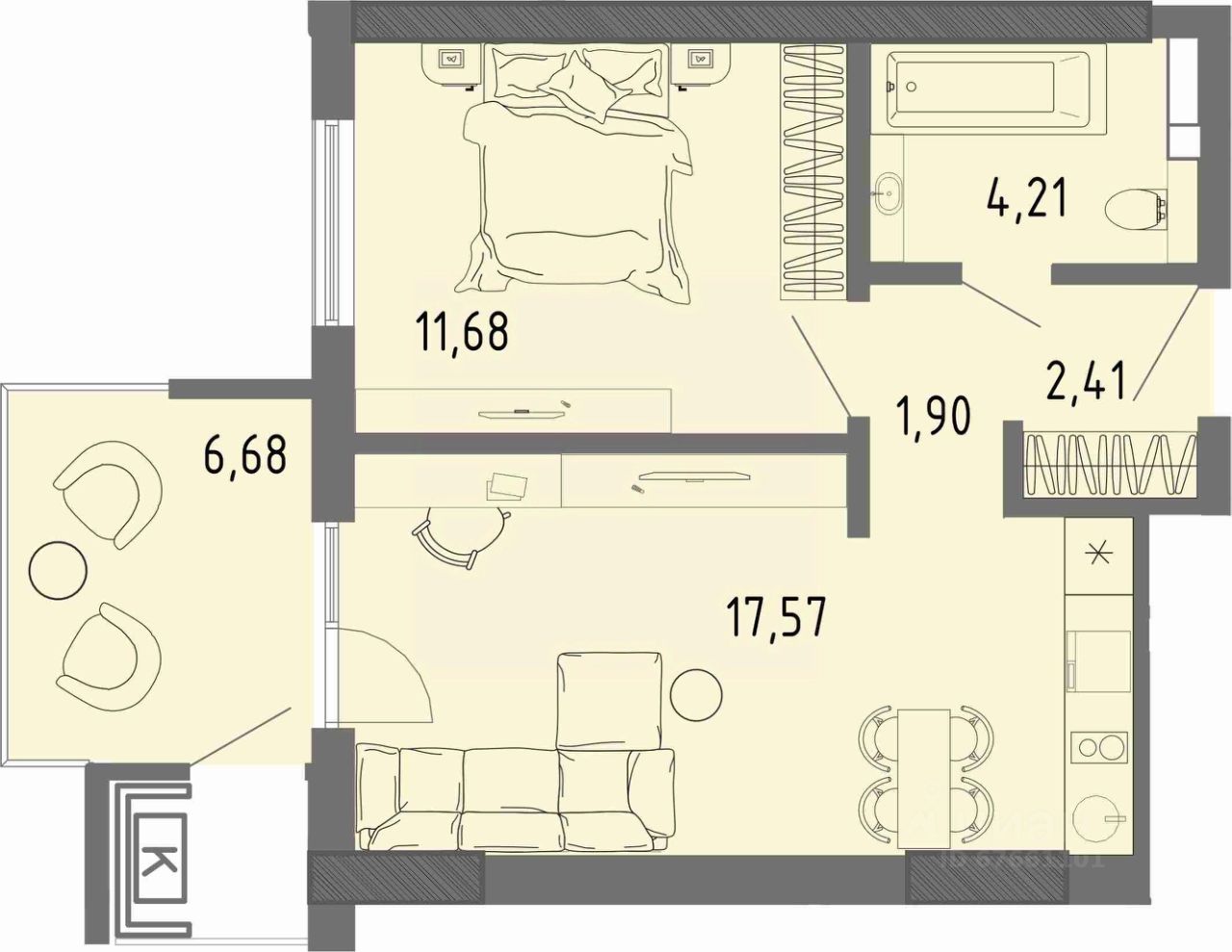 Продаётся квартира 10 площадью 44,45 м2 в новом ЖК СОК