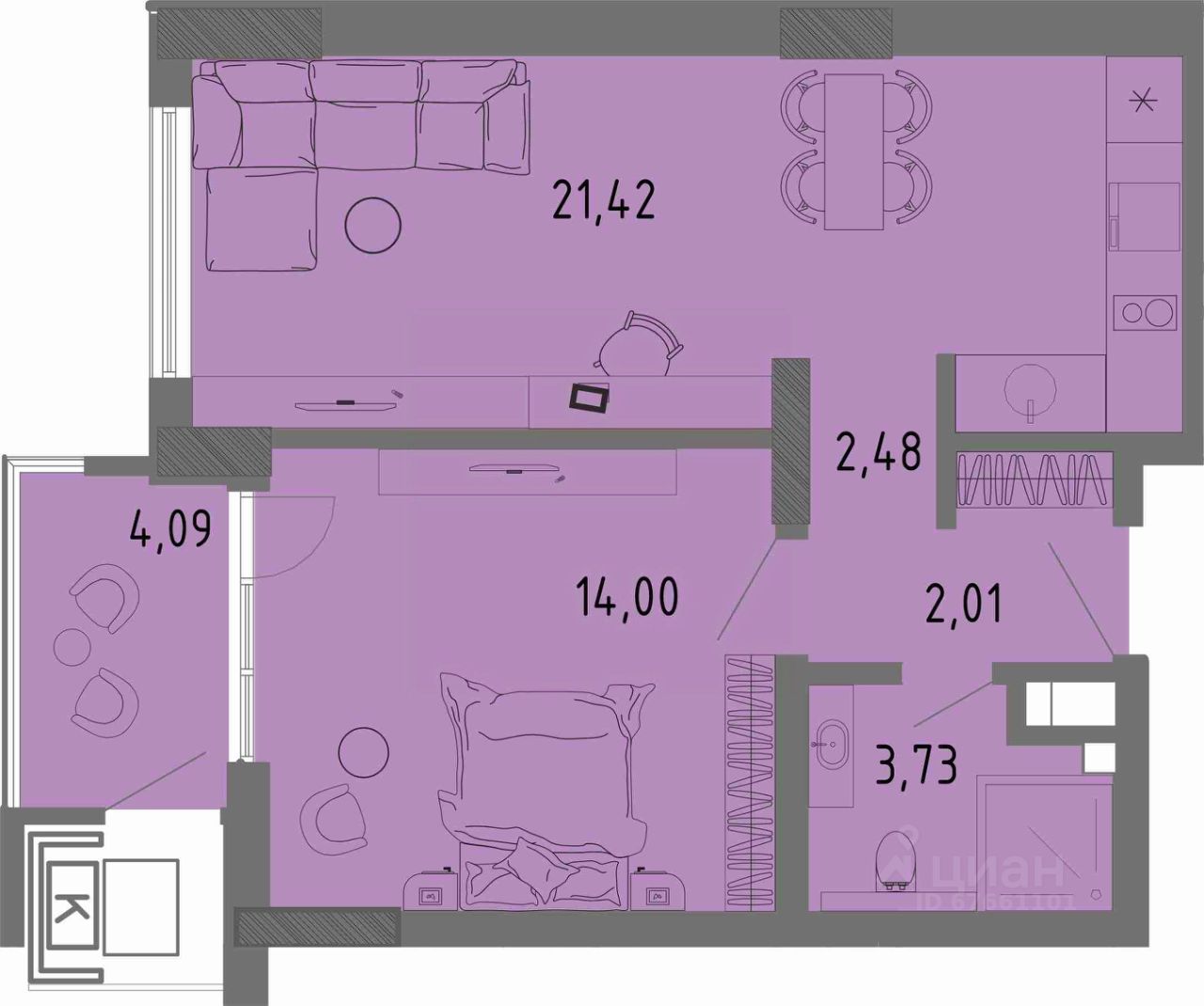 Продаётся квартира 49 площадью 47,73 м2 в новом ЖК СОК