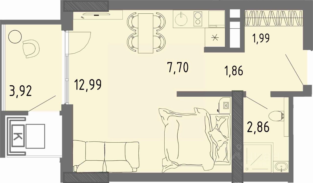 Продаётся квартира 60 площадью 31,32 м2 в новом ЖК СОК