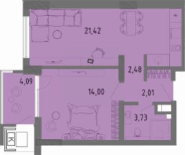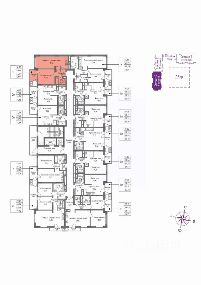 Продаётся квартира 61 площадью 47,73 м2 в новом ЖК СОК
