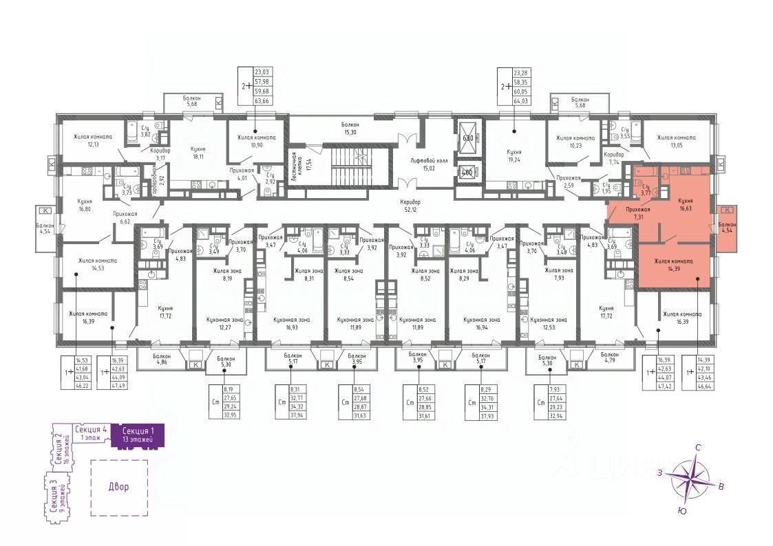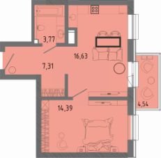 Продаётся квартира 273 площадью 46,64 м2 в новом ЖК СОК