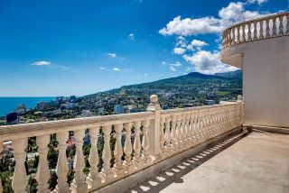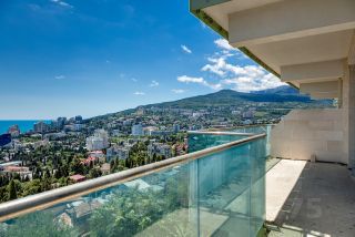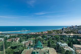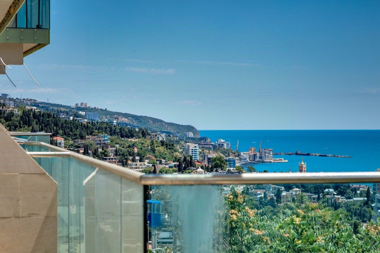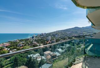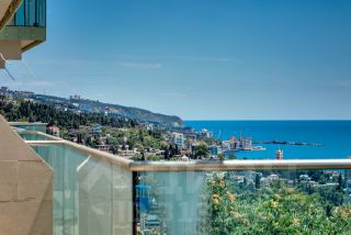 Уникальное расположение позволяет наслаждаться потрясающим видом из панорамных окон с остеклением в пол и просторных балконов на морские и горные пейзажи Ялты.