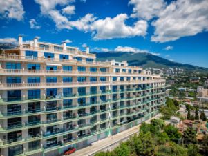 Благодаря тому, что жилой комплекс расположен на возвышенности, из окон квартир открываются панорамный вид на Чёрное море, великолепную Ялту и зеленый парк!Площадь квартир от 41,6 до 350 м.кв., в квартирах балконы и просторные террасы, панорамное остекление в пол, потолки высотой 3.3 м., свободная планировка .
