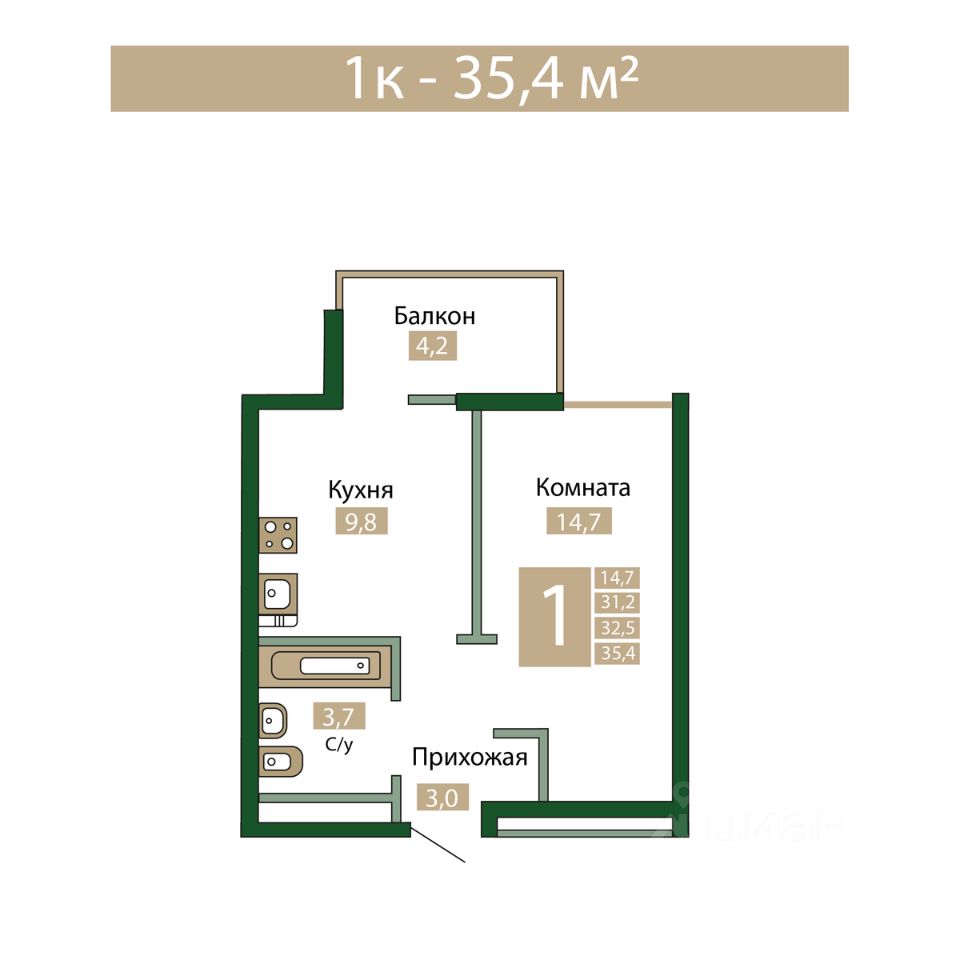 Продаётся 1-комнатная квартира в строящемся доме (Дом 5к1), срок сдачи: I-кв. 2027, общей площадью 32.5 кв.м., на 10 этаже. УМНЫЙ ЖИЛОЙ КОМПЛЕКС