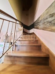 На втором уровне (30 кв.м.) две спальни с двуспальными кроватями, комнаты декорированы деревом. На втором уровне также есть совмещенный санузел.