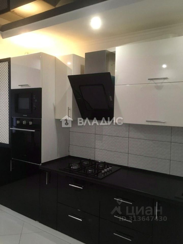 Спальня 16, 1 кв.м, мебель, встроенный шкаф - гардеробная, на кухне-гостинной (10,6 кв.м) также остаётся встроенная мебель, плита, холодильник, микроволновка, стол, стулья, кожаный диван.