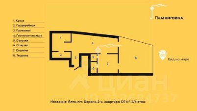 Предлагаем вашему вниманию двухкомнатную квартиру с дизайнерским ремонтом и большой террасой с видом на море в ЖК Коста Мисхор.