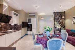 Апартаменты с видом на горы. В планировку включена просторная студия целых 29,7 кв. м., кухня 6 кв. м., санузел 4,4 кв. м. и шикарная терраса 6,7 кв. м., наслаждаться семейным ужином можно находясь на сведем воздухе, принимать солнечные ванны или переоборудовать террасу в зону барбекю прям в своей квартире всё на ваш вкус. Купить квартиру в Вилла Ливадия - купить мечту.
