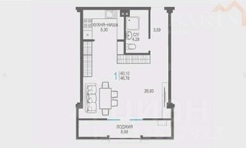 Продаётся видовая студия в ЖК Вилла Ливадия площадь 46,8 кв. м.