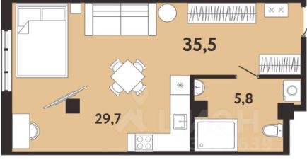 Апартаменты-студия, 35,5 м²
