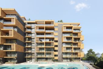 Апартамент располагает уединённой и приватной атмосферой, а виды из собственных террас само очарование: живописнейшая гора Болгатура, уютный внутренний двор с кипарисовой и пальмовой аллеями, панорамы уникального дизайн-кода фасадов Комплекса!Апартамент уникальный: с двух террас просматривается всё разнообразие видовых характеристик: море Черное, гора Аюдаг (Медведь-гора), виноградные плантации, кипарисовая и пальмовая аллеи, элементы внутриинфраструктурного благоустройства — бассейн, лаунж-зоны, прогулочные аллеи, гора Болгатура.