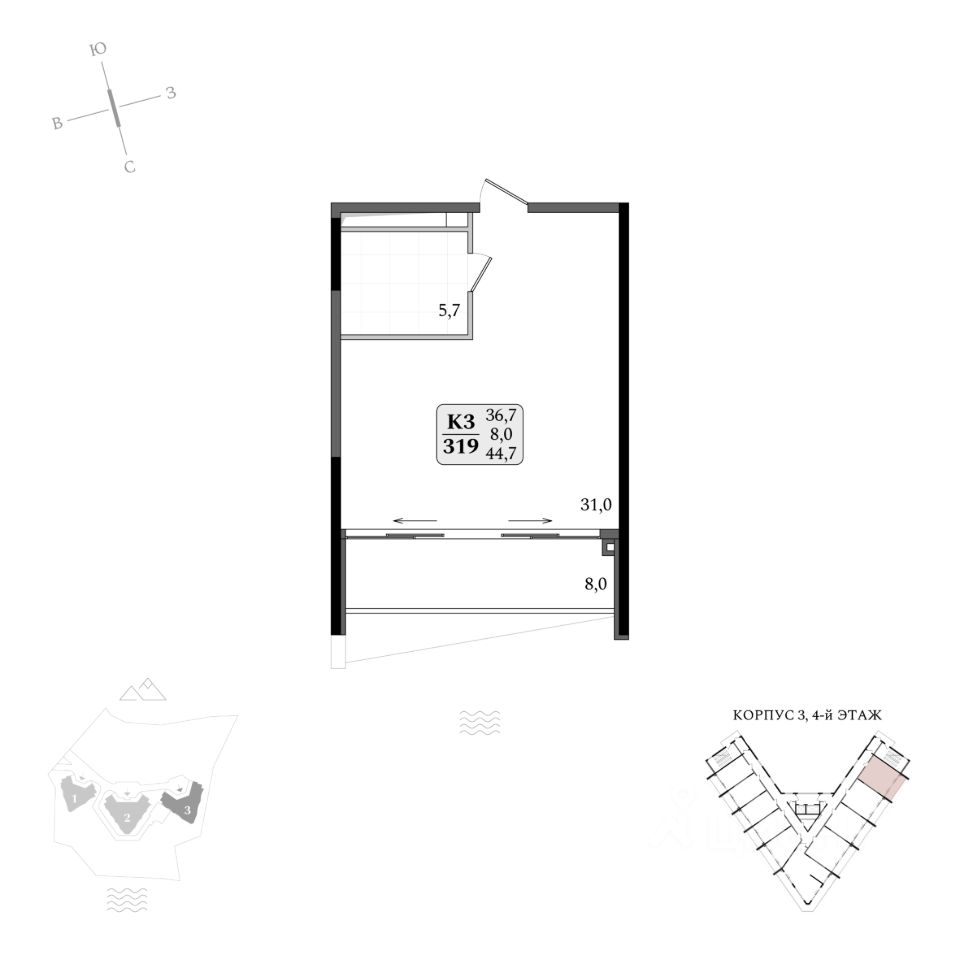 Продаются апартаменты 3/319 площадью 44,7 м2