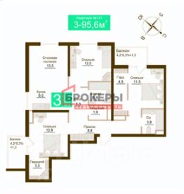 Продается3-комнатная квартира площадью 89,8 кв.м в новом доме.
