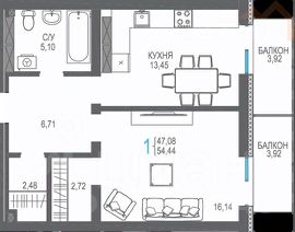 В планировку включена просторная спальня 16 кв. м., которая имеет собственный выход на балкон, и прихожая 6,7 кв. м. с возможностью выделить место под гардеробную, и два выделенных места под кладовки, кухня 13,45 кв. м., санузел 5,10 кв. м. и ещё один балкон, выход на который осуществляется с кухни это значит, что можно наслаждаться семейным ужином находясь на сведем воздухе, принимать солнечные ванны или переоборудовать балконы в зону барбекю прям в своей квартире всё на ваш вкус. Купить квартиру в ЖК "Бакунинский" - купить мечту.