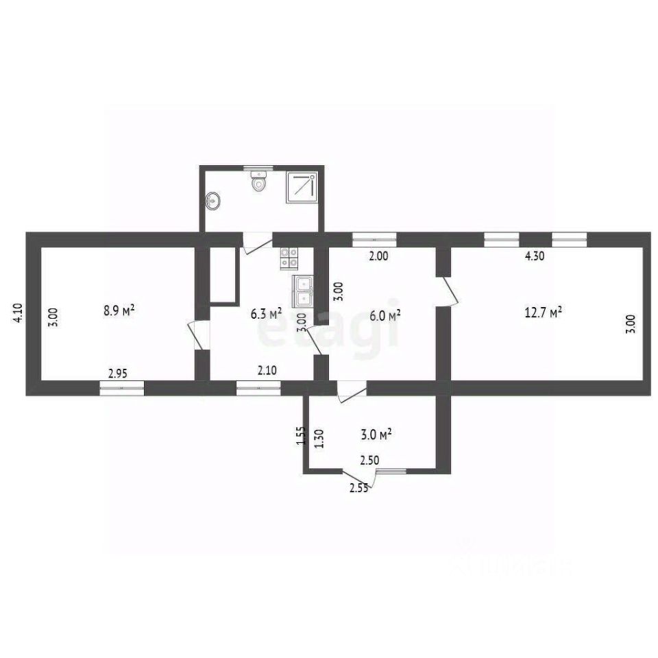 Площадь комнат составляет 12,7 и 9,9 квадратных метров.