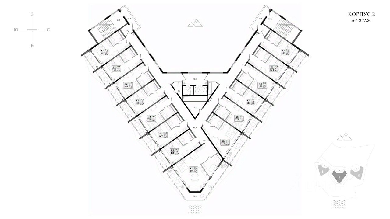 Площадь апартаментов: от 29,7 до 212,4 м2