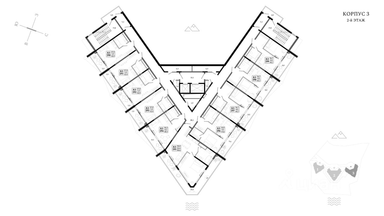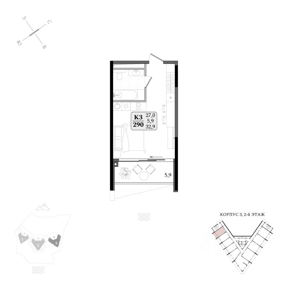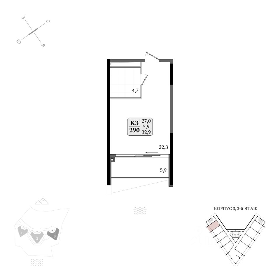 Продаются апартаменты 3/290 площадью 32,9 м2