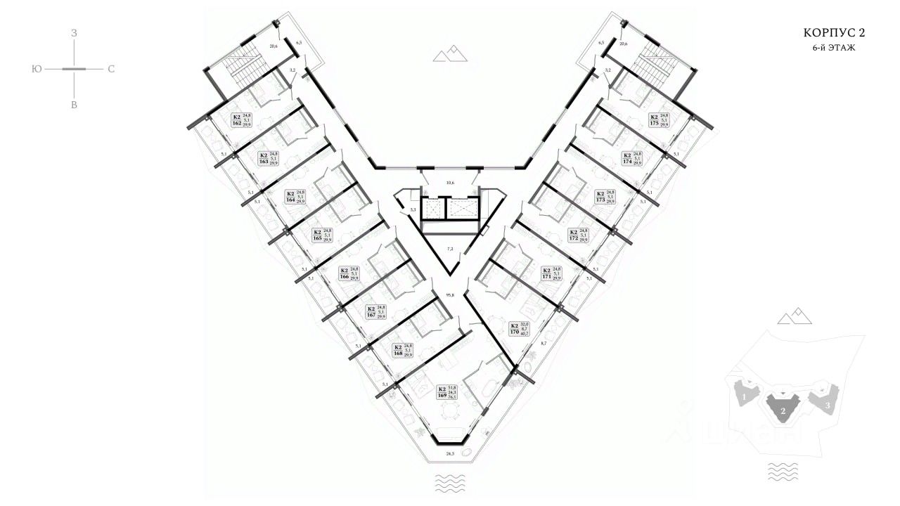 В комплексе представлена широкая линейка планировочных решений от студий до двухуровневых пентхаусов на последних этажах.