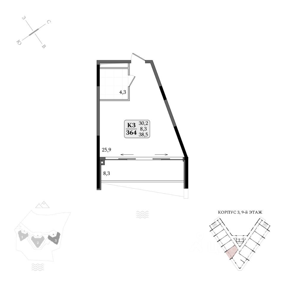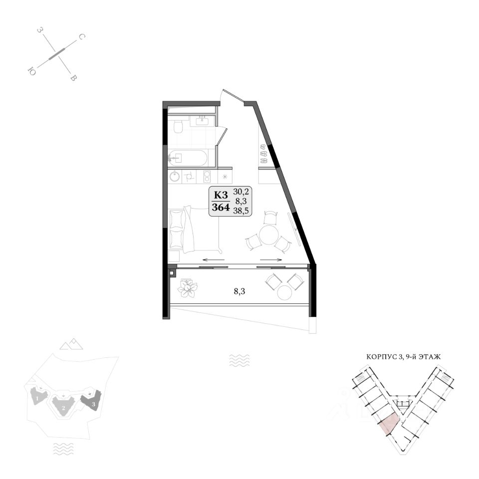 Продаются апартаменты 3/364 площадью 38,5 м2