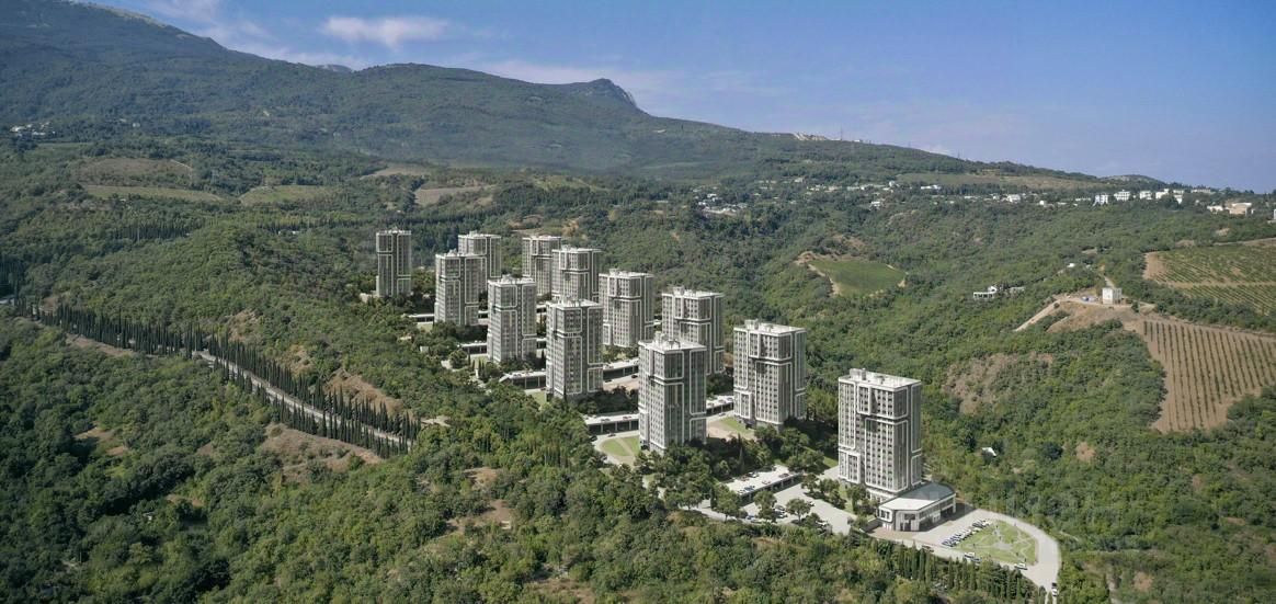 Жилой квартал с трех сторон окружен лесным массивом и горами, из окон открывает прямой вид на море и гору Аю-Даг, по границе участка проходит русло реки.
