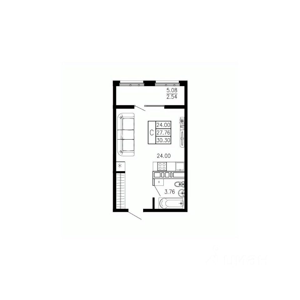 Общая площадь30,3 м²