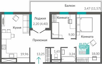 Продаётся 2-комнатная квартира в сданном доме (дом 1), срок сдачи: IV-кв. 2025, общей площадью 70.77 кв.м., на 6 этаже. Новый жилой комплекс "Абрикос" от застройщика "Монолит" расположен по адресу Республика Крым, Симферополь, Ростовская улица.