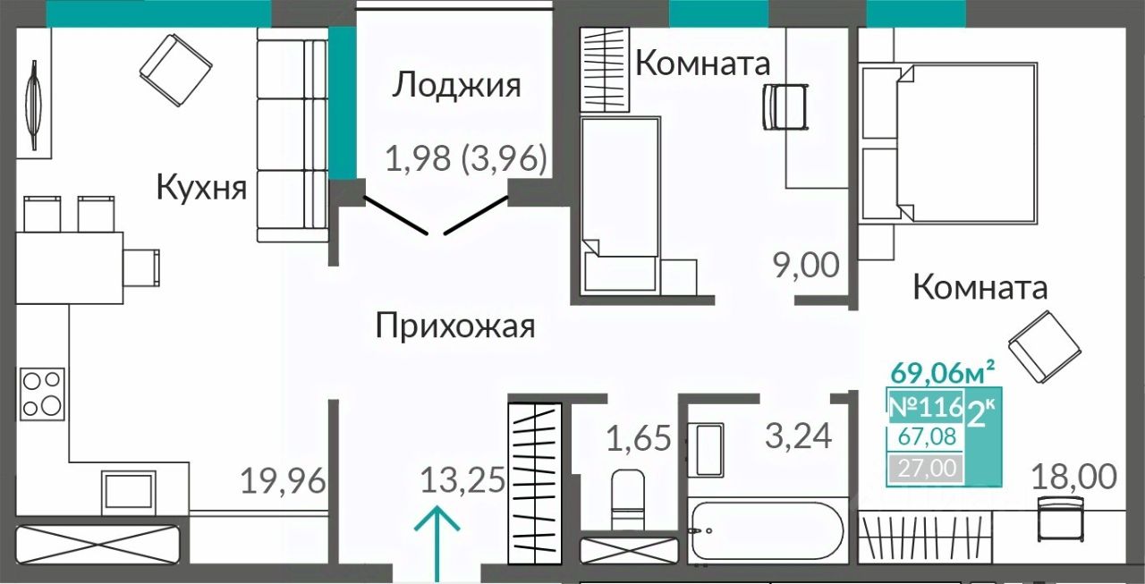 Продаётся 2-комнатная квартира в сданном доме (дом 1), срок сдачи: IV-кв. 2025, общей площадью 67.08 кв.м., на 9 этаже. Новый жилой комплекс "Абрикос" от застройщика "Монолит" расположен по адресу Республика Крым, Симферополь, Ростовская улица.