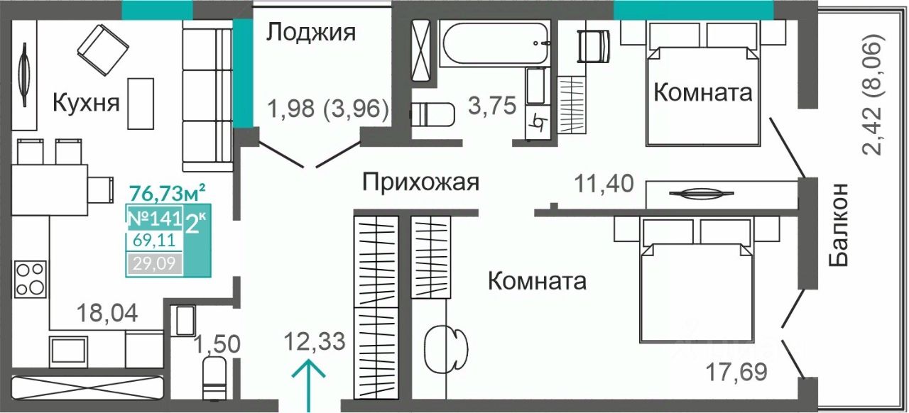 69,11 м²