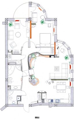 На подробном плане квартиры с расстановкой мебели отображены две спальни с выходом на лоджию с панорамой моря. В мастер-спальне есть боковое окно солнце в нем после 16 часов! Не палящее. Правая сторона - это все окна в кабинете и гостиной. Солнце после 15-16. Квартира не темная по освещенности, но и солнце не палит весь день . Меньше при этом работают кондиционеры. Ночью можно спать без кондера, за счёт окружающих гор воздух остывает и спускается к нам. Морской бриз также наполняет квартиру прохладой. Поют птицы и цекады. Светит луна, отражаемая в море, видна и лунная дорожка. Днём в море видны плавающие дельфины!!! Так как дом находится в парке, нет никаких ресторанов, дискотек, домов-муравейников и т.д., тишина и покой.
